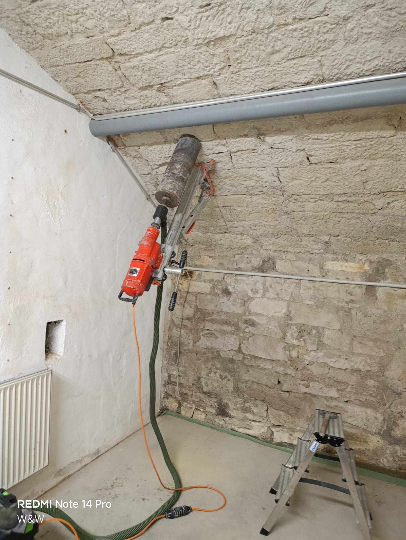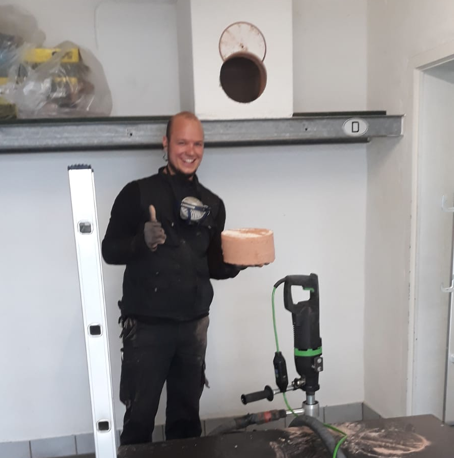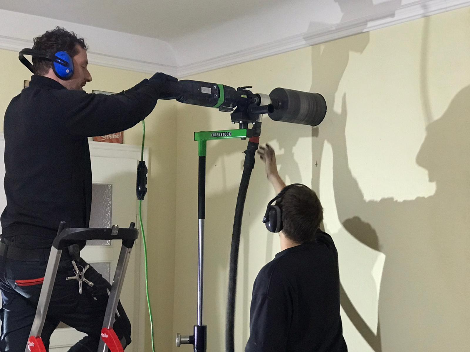 Kernbohrungen in Mauerwerk. Zum Beispiel für Lüftungsleitungen und Dunstabzugshauben. Bis 2,30 Meter ohne Einschlagdübel und staubfreie Bohrung.